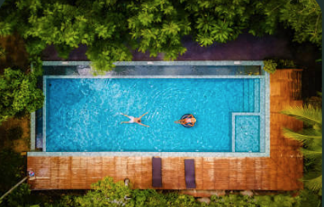 Cottages, natural pool, play spaces and bonfire lawns for families.